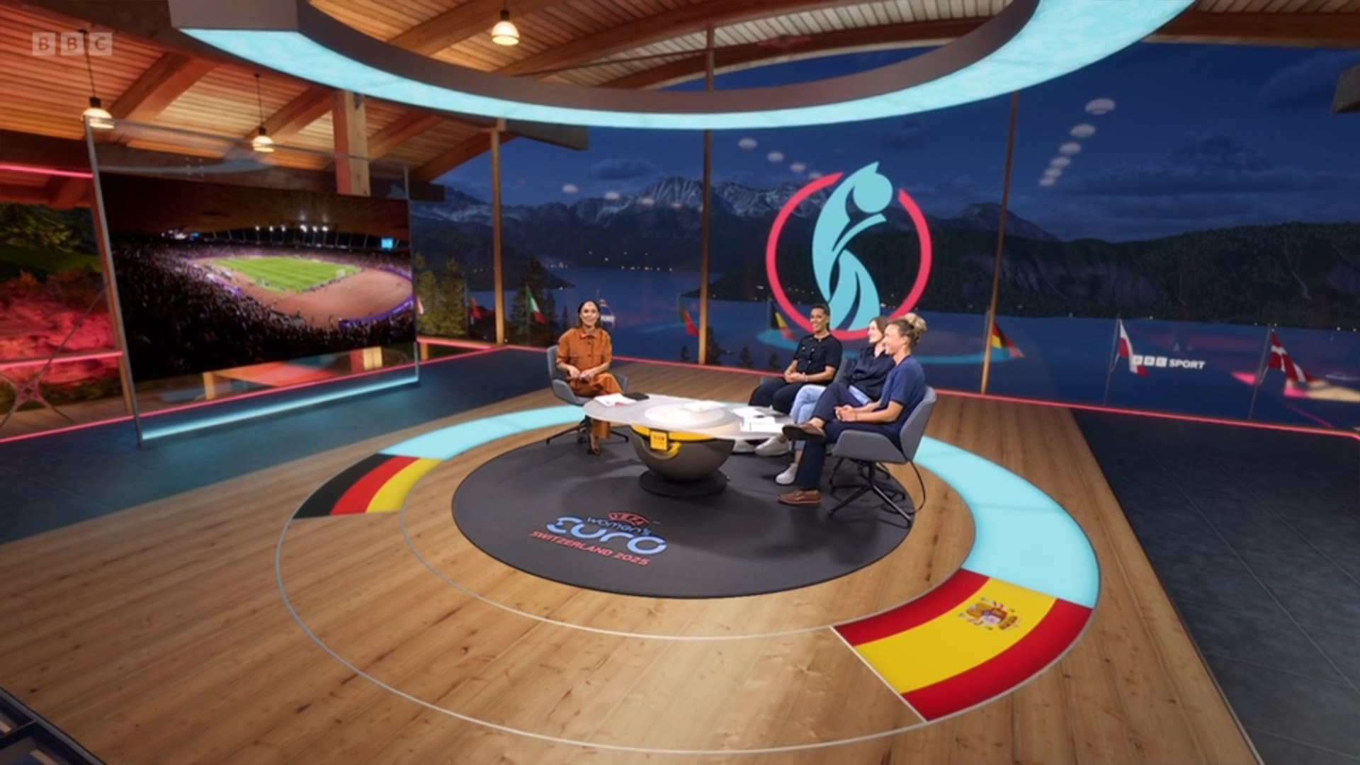 Creative direction was led by Lightwell, who along with longtime collaborator Toby Kalitowski, worked closely with BBC Sport to design a set that aligned with the tone and identity of the tournament. Every element, from the flags of participating nations to the positioning of the camera moves, was designed to support the storytelling and reflect the distinctiveness of a major international event.